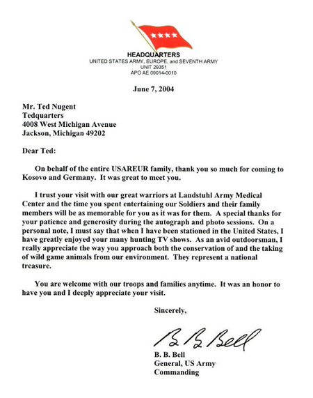 and read the letter of "avid outdoorsman" General B.B.Bell: