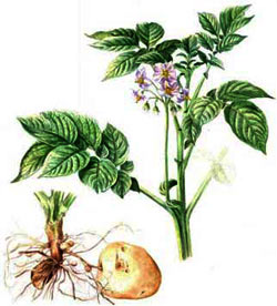 Oberirdischer Spross mit Laubblättern Stichwort: Vegetative Fortpflanzung (aid) Das Jahr 2008 ist das internationale Jahr der Kartoffel. Die Welternährungsorganisation der Vereinten Nationen (FAO) möchte mit dieser Initiative das Bewusstsein für die Bedeutung der Kartoffel als Grundnahrungsmittel schärfen. Denn die gesunde Knolle leistet laut FAO einen wichtigen Beitrag zur Ernährungssicherung und Bekämpfung von Hunger und Armut. Weitere Ziele der Initiative sind, negativen Folgen des Kartoffelanbaus wie der sinkenden Produktivität, der Ausbeutung der natürlichen Ressourcen und dem Verlust der Biodiversität (Arten-, Rassen- Vielfalt) entgegen zu wirken. Die Heimat der Kartoffel liegt in den Anden: Die ersten Knollen wurden vor rund 8.000 Jahren an der Grenze von Peru zu Bolivien in der Nähe des Sees Titicaca kultiviert. Erst im 16. Jahrhundert fand die Pflanze ihren Weg nach Europa und hat sich von dort aus weltweit ausgebreitet. Heute gehört die Kartoffel nach Mais, Weizen und Reis zu den vier wichtigsten Kulturpflanzen. Im Jahr 2006 wurden 315 Millionen Tonnen Kartoffeln erzeugt, davon mehr als die Hälfte in den Entwicklungsländern. Zahlreiche Veranstaltungen rund um die Kartoffel sind im kommenden Jahr geplant, darunter auch Foto- und Kunstwettbewerbe sowie Ausstellungen. |