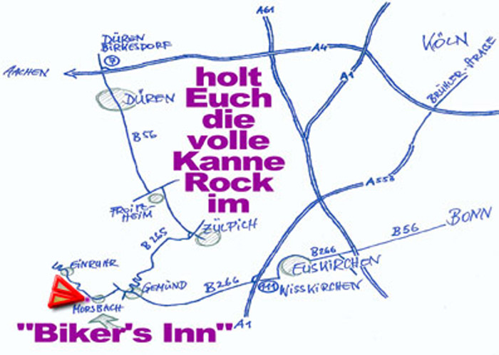 So kommt man in die schöne Eifel - nach Morsbach ins Bikers Inn zu Petra und Günther