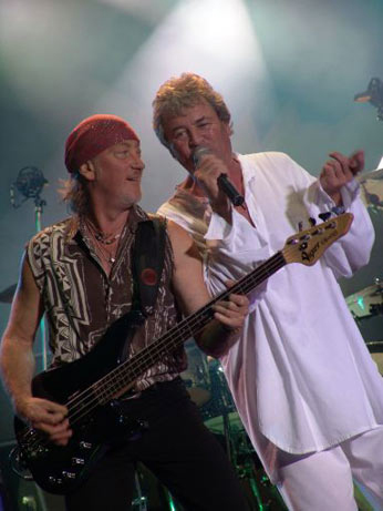Coverdale war ein nahezu unbeschriebenes Blatt und erkämpfte sich den Job bei DEEP PURPLE wie weiland 1968 Rod Evans durch eine im ‚Melody Maker’ geschaltete Anzeige und einer Audition. Das Engagement von Hughes erwies sich dagegen als nicht unproblematisch. Vertraglich war der neue Mann am Viersaiter, der zuvor bei TRAPEZE mit Mel Galley und Dave Holland musizierte, noch einige Monate an seine bisherige Plattenfirma gebunden. So fungierte Hughes bei DP zu Beginn als ‚anonymes Gruppenmitglied’ und erhielt auf „BURN“ trotz aktiven Mitwirkens am Kompositions-Prozess keine Song-Credits. Aufgenommen wurde „BURN“ im November 1973 noch einmal in Montreux mit dem Rolling Stones Record Mobile unter der bewährten Leitung von Toningenieur Martin Birch. Diesmal fackelte zwar nichts mehr ab, doch der Dunstkreis von Feuer und Rauch blieb. Zum Albumtitel „BURN“ präsentierten sich DEEP PURPLE ‚in wax’! Auf dem Backcover verglimmen die auf dem Frontbild noch erhaben illuminierten Purpur-Musiker (mit einer Kerze auf dem Kopf) drastisch zu Wachs-Grimassen ein Sleeve Design als Metapher und unfreiwilliges Menetekel zugleich. Noch war man aber künstlerisch wie kommerziell äußerst erfolgreich: „BURN“ erschien im Februar 1974 auf dem Markt und knackte im Nu in den USA wie UK und Europa die Top Ten der Album-Charts. Mit Ausnahme von „Mistreated“ (Coverdale) sangen Hughes und Coverdale die Lead Vocals abwechselnd oder im Chorus, auch wenn der Gesangspart natürlich durch Gillan-Nachfolger Coverdale dominiert wurde. Das war tatsächlich eine Neuerung, die im idealen Fall neue Farben in den Purple-Sound brachte. Da beide Stimmen ihre Vorlieben für Blues (Coverdale) und Jazz & Soul (Hughes) nicht leugneten, änderte sich der Purple-Sound dramatisch eine gewagte Mixtur, die auf „BURN“ in einem feurigen Cocktail aus Boogie, Rock ‚n’ Roll und hartem Rhythm & Blues gelungen endete. Künstlerische Ausrichtung (Geschmackssache!) und Input von Coverdale wie Hughes demonstriert der zweite Album-Track (und Single-Auskoppelung) „Might Just Take Your Life“. Exemplarisch für den neuen Wechsel-Gesang Coverdale/Hughes stehen „You Foool No One“ (mit funky Percussion von Paice) und „What’s Going On Here“. „Sail Away“ groovt und swingt prächtig! Mit dem Titeltrack „Burn“ zündeten DP eine echte Hardrock-Rakete Blackmore ‚feuerte’ einleitend ein wahres Killer-Lead-Riff dazu ab. Jon Lord entflammte auf dem Album variable Keyboard-Teppiche mit dem Einsatz seines kompletten Tasten-Equipments (Hammond B3, Moog, Synthesizer, E-Piano). Erfolgreich: Das Songwriter-Duo Blackmore/Coverdale. Mit „Mistreated“ gelang musikalisch und textlich ein glühender Hardrock & Blues-Song in Vollendung. Live erwies sich Coverdale als Frontmann mit beachtlichen Show- und Entertainer-Qualitäten. Kaum zu glauben, dass der selbstbewusste Künstler und erklärte Mädchenschwarm einst von Jon Lord in das gleißende Licht der Bühnenwelt ‚geschubst’ werden musste. Als er am 8. Dezember 1973 zum ersten Mal mit seinen Kollegen ein Konzert bestritt (in Dänemark, auch hier eine Analogie des Starts von Mark I zu Mark III), schrie er dem Kopenhagener Publikum sein legendäres „How are yer?“ im North Yorkshire-Akzent entgegen. Coverdales Nervosität war besiegt und die Konzerte mit ‚den Neuen’, Hughes und Coverdale, gerieten zu Triumphzügen vor ausverkauften Arenen. Den in die Band gekommenen Musikern gebührt Anerkennung dafür, die Purple-Musiker der ersten Stunde Lord, Blackmore und Paice wieder zu neuen Spitzenleistungen angetrieben zu haben. Trotz dieser nicht zu leugnenden Erfolge an den Live-Darbietungen der Herren Coverdale und Hughes schieden sich schon früh die Geister. Für Fans, die Ian Gillan nachtrauerten, waren die live dargebotenen Interpretationen von Song-Material aus Mk II schlicht ein Greuel „Child In Time“ oder „Highway Star“ wurde in ihren Ohren akustisch vergewaltigt. Trotz unbestreitbaren Talents und Total-Einsatzes wurde Coverdale der Nachfolge von Ian Gillan nicht in vollem Umfang gerecht. Gillan erwies sich mit seiner spezifischen Stimme im Nachhinein einfach als zu prägend für den Gesamtsound von DEEP PURPLE. Die Stimme von David Coverdale passte dagegen nur bedingt zu DP, obwohl er harte Songs wie „Burn“ oder „Mistreated“ ideal bewältigte. Künstlerisch optimal entwickelte sich Coverdale erst nach seiner DP-Phase mit seinen Solo-Scheiben „WHITESNAKE“ und „NORTHWIND“. (Daraus resultierte die Gründung DER bluesorientierten Hardrockband Ende der 70er Anfang der 80er Jahre schlechthin WHITESNAKE!).