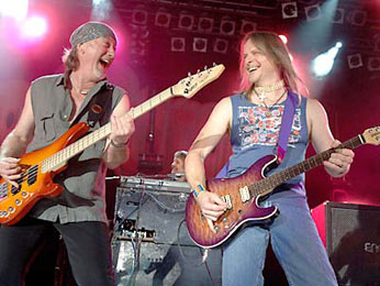 Im Herbst 1993 fanden DP Ersatz für Blackmores verwaisten Gitarrenthron. Niemand geringerer als Joe Satriani, einer der weltbesten Gitarristen, rettete die anstehende Japan-Tournee. Satriani verstand sein Engagement von vornherein als zeitlich begrenzt, DP & Management akzeptierten das. Satriani, auch Seminar-Leiter für Gitarre, beherrscht düstere Stimmungen oder vertrackte Soli ebenso gut wie Balladen oder lupenreinen Rock ‚n’ Roll. Satrianis Soli waren nicht nur spieltechnisch brillant, sondern auch experimentell und zeigten eine neue Sichtweise einiger DP-Stücke auf! Erfreulicherweise wurde mit dieser DP-Besetzung (Mk VI) 1994 auch das europäische Publikum verwöhnt. Im Juli 1994 war das Gastspiel schon wieder beendet. Es gibt keine offiziellen Aufnahmen mit Satriani bei DP, weil sich die Plattenfirmen nicht einigen konnten. Regulär blieb Satrianis Zeit undokumentiert und kann nur anhand von Bootlegs nachverfolgt werden. Satriani arbeitete weiter an einer erfolgreichen Solokarriere (u.a. G3 Projekt mit Steve Vai). Die Live-CD „COME HELL OR HIGH WATER“ kam im Oktober 1994 heraus. Aufgenommen wurde die CD während der 1993er Tour in Stuttgart, München und Birmingham eine überzeugende Resteverwertung vom Nachlass aus Mk II. Wesentlich besser und druckvoller als der letzte Live-Output „NOBODY’S PERFECT“, ist diese Aufnahme ein guter Beweis, wie kreativ diese legendäre Besetzung trotz interner Querelen sein konnte. Das gleichnamige Live-Video zeigt das ausverkaufte Birmingham-Konzert und enthält den zornigen Pappbecherwurf Blackmores auf einen Kameramann. Diese beiden Tonträger kann man getrost zur Referenz der Purple-Ära der 90er heranziehen, weil hier neben der musikalischen Klasse auch die persönlichen Widersprüchlichkeiten zwischen den Musikern dokumentiert sind. Morse-Zeichen bei DEEP PURPLE Für die Suche nach einem Blackmore-Nachfolger nahm man sich diesmal die entsprechende Zeit. Im November 1994 war es soweit einhellig fiel die Entscheidung auf Steve Morse (geb. 28. Juli 1954 in Hamilton OH). Morse bestach seit je her durch seine Vielseitigkeit und ist wie Satriani auf höchstem spieltechnischen Niveau zu Hause. Mitte der Siebziger kam die heute sehr gesuchte LP „THE GREAT SPECTACULAR“ von seiner Band DIXIE DREGS in kleiner Stückzahl auf den Markt. Die Musik, die zwischen Jazz, Country und Rock fusionierte, deutete schon an, wie vielschichtig die Karriere des sympathischen Musikers noch verlaufen sollte. „Dixie Dregs“ erfreuten sich immer größerer Beliebtheit. Alben von höchstem Neveau: „DREGS OF THE EARTH“ (1980) und „UNSUNG HEROES“ (1981) erfüllen höchste Ansprüche. Nachdem sich die DREGS 1982 auflösten, musizierte Morse als Soloprojekt, bevor er später den Nukleus der STEVE MORSE BAND als Trio bis heute weiterführen sollte. Größere Bekanntheit erreichte er mit seinem Gastspiel bei der amerikanischen Progband KANSAS, die Morse für zwei Alben verpflichten konnte (1986: „POWER“ und 1988: „IN THE SPIRIT OF THINGS“). Schon bei KANSAS wagte er sich in große Fußstapfen, sollte er nicht nur den Mastermind Kerry Livgren ersetzen, sondern darüber hinaus auch noch live mit der Gitarre die Geigenphrasen spielen. Dass Morse auch interessante Hardrock-Soli spielen kann, bewies er zusammen mit Rik Emmett auf der TRIUMPH-Scheibe „SURVEILLANCE“ und dem Hammersong „Headed For Nowhere“! „PURPENDICULAR“ ist das erste DP-Studioalbum seit „COME TASTE THE BAND“, dessen erste Töne von einer Gitarre kommen. „Ted The Mechanic“ ist ein stampfender und druckvoller Opener. Weitere Eckpfeiler der CD sind die lange vermissten sessionartigen Songs wie „Rosa’s Cantina“ und „Cascades: I’m Not Your Lover“, die von Lord angeführt werden und eine schöne Liveclub-Atmosphäre suggerieren. Die ruhigen Songs „A Touch Away“ und das irisch klingende „The Aviator“ kommen im gemäßigten und angenehm knappen Arrangement daher (letzterer Titel wurde auch von dem deutschsprachigen Deep Purple Fanclub als Nmensgeber übernommen, deren Homepage www.the-aviator.de dem geneigten Fan als Surftipp empfohlen sei). Quintessenz von „PURPENDICULAR“ ist jedoch der 7:29 Minuten Übersong „Sometimes I Feel Like Screaming“, der schnell zum Klassiker avancierte. Die ‚singende’ Gitarre, die dezenten Klavietöne, die wie zu ihren besten Zeiten tighte Rhythmussektion und ein glänzend aufgelegter Sänger markierten einen neuen, magischen Höhepunkt in der umfangreichen Band History. „PURPENDICULAR“ stellt die stimmigste Arbeit seit „PERFECT STRANGERS“ dar und konnte sich in UK auf Platz 58 und in Deutschland auf Platz 16 positionieren. Eine überzeugende Europatournee stellte klar, dass DP nicht gewillt waren, dieses Zusammenspiel als nur kurzfristig zu akzeptieren. Höhepunkte waren die musikalischen Duelle zwischen Morse und Lord, wobei Lord sich immer als ‚bezwungen’ gab, um den skeptischen Fans Morses herausragenden Qualitäten klar zu machen!