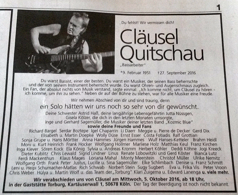 Todesanzeige im Kölner Stadt-Anzeiger, gesandt von Uwe Bogenschütz