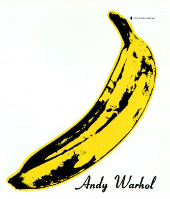 ...Krumm wie sie ist, ziert die Banane das erste Album der New Yorker Rock-Band Velvet Underground, exsklusiv gesiebdruckt von Andy Warhol, der die Gruppe in seine Factory aufgenommen hatte. Auf der Erstausgabe, die 1967 erschien, findet sich rechts oben die Aufforderung: "Peel slowly and see", "Schäl sie und Du wirst Augen machen".