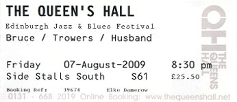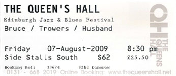 THE CREAM OF SCOTLAND -5- THE CONCERT Hi Jack Bruce, here we come! Von Kings House Hotel bis Crianlarich auf der A 82, der gewohnten Route Richtung Glasgow; Dann, nicht wie gewohnt, scharf rechts, sondern geradeaus weiter auf der A 85, über Lochernhead. Hier ebenfalls geradeaus auf der nun A 84, vorbei an Kingshouse, dem Namensvetter unseres Traumhotels in Rannoch Moor, kurz hinter Balquhidder Station, im Queen Elizabeth Park. Immer weiter auf der A 84, bis kurz vor Stirling, nach rechts auf die M 8, die hinter Bannokburn zur M 9 wird und über Grangemouth, parallel zum Firth of Forth Richtung Osten, seit Newbridge/Ratho wieder als M 8, zum westlichen Treffpunkt mit dem Straßenring um Edinburgh führt (The City of Edinburgh Bypass). Rechts ab auf die A 720 bis zum gemeinsamen Kreisverkehr mit A 7, auf dem nach rechts, Richtung Dalkeith, ein kleines Städchen im südwestlichen Teil des Speckgürtels der Metropole und Hauptstadt Schottlands. Erneuter Beweis für die Kompetenz der Co-Pilotin und Logistikern Elke: An der Ampel in Dalkeith Center links siehe da, rechter Hand: Unser Nachtlager für Edinbvrgh „The County House Hotel“, eine feine, empfehlenswerte Adresse, die sicher viel größere Zeiten hinter sich hat, dies aber mit gepflegtem Charme trägt. Unser Zimmer nach hinten raus, sehr ruhig, zwei Einzelbetten, großes Bad mit den üblichen coffee- und tea-Bereitungs-facilities. Wir folgen dem guten Rat einer Hotelangestellten und parken den Focus auf dem freien Hotelparkplatz vor dem Haus und nehmen dafür den Bus zu Queen’s Hall. Parken in Edinburgh muss wohl noch einen Tick exquisiter sein als in Köln. Mit einem Tagesticket von je 3 Pfund sind wir in 40 Minuten am Ziel, finden so gegen... helllichten Tages die Ticket Box (dt.: "Abend"kasse) der Queen’s Hall, erhalten die gebuchten Eintrittskarten, Elkes, Kallemanns, und erfahren die Zeiten für Einlass, 19.30 Uhr, Konzert-Beginn, 20.30 Uhr mit einer Vorgruppe aus zwei Bluesmen. Jack Bruce und seine Mannen sollten demnach so gegen 21.15 die Bühne betreten. So hatten wir noch einige Stunden Zeit und beschlossen, nach Dalkeith zurück zu fahren, etwas zu essen und ein wenig an der Matratze zu lauschen. Die doch nicht gerade wenigen, auf jeden Fall ungewohnten Kilometer der vergangenen vier Tage mit unterschiedlichen Bed-Qualitäten unserer jeweiligen B&Bs stecken so betagte Knochen wie zumindestens meine doch nicht mehr so locker weg wie... Zunächst mal machte uns die fehlende Ortskenntnis einen kleinen Strich durchs Kontor: Da keine einzige Haltestelle angesagt wurde, wir nicht wussten, dass die Rücktour des Busses auf einer anderen Route durch Dalkeith verlief, saßen wir noch Meilen weiter auf unseren Stühlchen. So machten wir eine kleine Rundfahrt bis zur Endstation der Strecke, der Fahrer belehrte uns, dass es nicht „Doaaalkiieß“ sondern „Dellkiss“ heißt und sagte dann aber - exklusiv für uns - unsere Haltestelle dort pünktlichst an, die in der Richtung Edinburgh, die wir jetzt natürlich sofort wieder erkannten; Sind ja nicht ganz plem-plem. Eine ordentliche Portion Fish’n’Chips - beide diesjährigen "glänzten" mit matschigen, sogenannten Kartoffelstücken, die in Inverness auch noch in altem Fett gegart waren - die besten haben wir bisher jedes Mal in Oban gegessen. Congratulation. Aber: Hauptsache satt, wie man ja so hübsch hässlich sagt?! 18.30 Uhr, der Wecker piept also definitiv nicht umsonst mitgenommen , in „feine Schale“ geworfen, me: Saubere Hose und Lederjacke, she: Saubere Hose und feines Oberteil. An Queen’s Hall sind wir dann immer noch 30 Minuten zu früh, machen eine gemütliche (Nikotin, she) Runde um den Block und entdecken dabei den angemessenen Ort für den Ausklang nach dem Konzert, "The Maltings", eine, wie sich herausstellen sollte, typische Edinburgher Eck-Kneipe. Am Einlass von Queen’s Hall, neben den üblichen und freundlichen Karten-Abreißern beiderlei Geschlechts ein beeindruckender Securityman mit traditionellem Catcher-Format, siehe Nosher Powel aus „Eat The Rich“. Elkes voluminöse Umhängetasche erregt natürlich vorrangigen Verdacht als potenzielles Versteck für Kameras und sonstige Waffen aller Art, fährt jedoch die allseitige Anspannung sofort nach bereitwilliger Öffnung in erleichtertes Lachen herunter, angesichts eines fröhlich herauslugenden Band-Bears. Diesem, zwar nicht besser planbaren, aber dennoch glücklichen Verlauf verdankt der neue Camcorder in meiner schwarzen Lederjacke sein dort weiterhin unbemerktes Verbleiben. Das Personal war offensichtlich angehalten, danach zu suchen. Der Künstler habe ausdrücklich darum gebeten, weder geblitzt noch gefilmt zu werden, wie die Ansagerin später verkündete. Die Abmessungen der Camera von 13x9x8 cm sind zwar im Vergleich zu entsprechenden Geräten älterer Bauart winzig, dennoch verdankt sie ihr Un-entdeckt-bleiben an diesem Tag dem maskuline Oberweiten vortäuschenden Faltenwurf meiner geliebten, unförmigen, alten Jacke. Thank you very much, my dear. Die Bar, ein wirklich hoher und luftiger Seitenschiff-Raum der ehemaligen Kirche, dessen Dachkonstruktion in kunstvoll zusammengefügten, verzapftem Eichengebälk und im offensichtlich ursprünglichen Stil nachempfunden, bei uns eine wunderbar leichte, schnörkel- und zeit-lose Stimmung erzeugte, füllt sich beständig mit Menschen um und leicht eineinhalb Generationen unter unserer Verweildauer auf diesem Planeten, von offensichtlich bekennenden R’n’Rern mit plus minus gepflegten grauen Mähnen bis großherzigen Kunstliebhabern und Gästen des Jazz- und Blues-Festivals, die das Bild dieser Tage in Edinburgh neben den üblichen Touristen brodelnd mit bestimmen. Es klingelt, wie in einem Theater. Das Konzert wird gleich beginnen. Wir nehmen unsere Plätze ein, links vor der Bühne in der dritten Reihe der Seitenbänke. Schade, ich hatte eigentlich mit der Galerie gerechnet. Das wäre für eine Aufnahme optimaler gewesen. Da die einzelnen Sitz