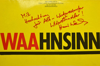Hans Well & Wellbappn Jonas (*24.8.1996), 13. Oktober 2017 - Hans Well - Internetseite - Hans Well - Über uns ### - „Stadtgespräch München“ 26.10.2016 Vor mehr als 31 Jahren, am Freitagabend, 25. Juli 1986, erfahren wir, Uwe, Elke und ich, im OUT, der Kneipe von Renate Köster, dass Gerd Köster und seine Band, "Die Firma", an diesem Wochenende beim 5. ANTI-WAAHNSINNS-FESTIVAL, 26./27. Juli 1986 in Burglengenfeld auftreten werde. Uwe und ich beraten kurz, ob wir auch hinfahren, befinden, dass JA, fragen Elke, die lakonisch meint, GENEHMIGT, und so sind wir unmittelbar darauf unterwegs, Richtung Nürnberg und noch weiter. So wurden wir bei bestem Wetter Zeugen des ersten Tages des angeblich größten Musikereignisses Deutschlands. Und dann, mit der Doppel-LP von diesem 5. Festival gegen die politisch gewollte Wieder-Aufarbeitungs-Anlage (WAA) für abgebrannte Brennelemente aus Atomkraftwerken in Wackersdorf, wurden wir auf die Biermösl Blosn aufmerksam, genauer gesagt auf ihren Beitrag "TSCHÜSS BAYERNLAND". Für uns ist es eigentlich DER Beitrag, der dem Widerstand der Bevölkerung der Oberpfalz - stellvertretend für die ganze Menschheit! - gegen die Atomindustrie den berechtigsten, authentischsten Ausdruck verleiht. Und in der musikalischen Form bayerischer Volksmusik + Dudelsack: Der wahre Kern des Protests auf dem Lanzenanger, dem Ort des Open Air Festivals. Alle übrigen Beiträge bildeten eigentlich "nur" den, wenn auch üppigen und würdigen Rahmen. Seitdem teilen Uwe und ich neben dem Bühnenauftritten von Uli Hundt und Jächt Köster beeindruckende Rahmenerlebnisse - u.a. haben wir noch nie solch endlose Karawanen fröhlicher Menschen mit und ohne Schlafsäcken durch fränkische Kleinstadt-Straßen ziehen sehen, begleitet von freundlich lachenden Anwohnern; noch nie so viele nackte Podexe bei hellem Tageslicht in Hock-Klo-Position an Rain und Wegrändern - und so wenige Toiletten für hunderttauseend Gäste; wir wurden neben einem Acker oberhalb des Festivalgeländes durch den kaum erträglich dramatischen Purple Schulz "... ich will hier raus!" aus unserem Open-Air-Mittagsschaf geweckt; und als wir in der Abenddämmerung zurück zum Auto gingen - wir (Uwe?) musste/n am Sonntag wieder in Köln sein - begleitete uns der wahrhaftige Oberfpfälzische Raumklang, von BAP gespeist, aus zwei Mal 10 mal 10 Meter Lautsprechertürmen (noch die "alten", die neben 10 Prozent Schall 90 Prozent Wärme produzierten) in die wellige Landschaft hinein: SCHÖN. ### Mit dem Startschuss dieses tollen Erlebnisses und mit der Doppel-LP um das Lied "Tschüss Bayernland" herum begründete sich zumindestens meine Kenntnis vom an Personal reichen Hause Well. Ähnlich wie mit den Machtwächtern in Köln, die ich als Student in den Sechzigern kennenlernte... um sie dann erst wieder wahrzunehmen, als sie sich 2001 auflösten, vernachlässigte ich die Biermösl-Blosn sträflich undankbar über Jahrzehnte und bemerkte erst nach ihrer Auflösung mit viel Freude und schlechtem Gewissen die Wellküren, die wir ganz in unserer Westerwälder Nachbarschaft in der Lasterbachhalle Elsoff erleben konnten. ### Wieder ein paar Jahre später mobilisierte uns nun die Ankündigung eines Auftritts von Hans Well & Wellbappn, Hans Well mit seinen drei Kindern, wieder in der Lasterbachhalle Elsoff: Ein erfrischender Abend für uns, kredenzt von vier mitreißenden Multi-Instrumentalisten, die mit unverholenem Spaß am Bühnen-Auftritt ihr aufgeklärtes Bayerntum in Spottliedern und satirischen Texten darboten. Für uns Senioren ein begeisterndes Beispiel dafür, dass sich Eltern und Kinder zum wechselseitigen Vergnügen und Nutzen doch tatsächlich einmal ohne die üblichen sinnfreien pubertären Konflikte zu einem produktiven Miteinander treffen können. Eine begeisternde, unverkrampfte Verlängerung der Biermösl Blosn, der wir ein langes künstlerisches Leben wünschen. Elke und Karlheinz So schön kann Volksmusik sein. „Bissig heitere Spottlust ohne Plattheiten. Schöne böse Lieder, vorgetragen mit virtuoser Musikalität von einem unglaublich lockeren, entspannten Gesangs-Kabarett, in dem sich der routinierte Papa niemals zu wichtig nimmt. Ein Generationen übergreifender virtuoser Leckerbissen." GESAMMELTES aus der Presse „Jonas, der schöne Kontrabass spielende Trompeter, der nach eigenem Bekenntnis eigentlich Biertester oder Matratzensommelier werden wollte, ist stimmgewaltig wie der Vater und tritt nicht nur in dessen Fußstapfen, sondern wächst Lied für Lied über sich hinaus. VON BIRGIT KUNIG, ### Ebenso unverschämt wie einen zu erwartenden Bericht von einem Konzert mit "ollen Privat-Kamellen" zu beginnen, ebenso kultiviert und ironisch erfüllt Hans Well, nach dem Ende des Auftritts und der Einnahme des Spätabendbrots des Veranstalters, unsere Bitte, die Plattenhülle vom Mitschnitt des WAA-Konzerts mit seinem Autogramm zu veredeln: Mit Hochachtung Akzeptiert! Treffer! Versenkt! "Das habt ihr ja prima hingekriegt!" - Drei Jahre später war die Wieder-Aufbereitungs-Anlage in Wackersdorf Geschichte. Na ja, gut, ein winzig kleines Mosaiksteinchen konnten wir immerhin doch durch unser halbes Dabeisein beim 5. Festival in Burglengenfeld und den Erwerb der Schallplatte beitragen. Und nun ist die Platte durch das Autogramm auch noch unbezahlbarer als sie es schon vorher war. ### Danke für den Abend, P.s.: Eure Aussprache ist phantastisch. Ihr seid - trotz des bayuvarischen Idioms - so prima zu verstehen; Tausendmal besser als in so mancher zeitgenössischen Film-Tonaufnahme. ### |