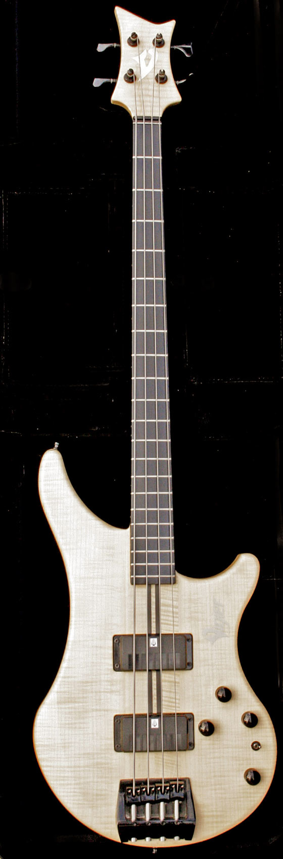 Druchgehende Carbon/Holz-Komposit-Halskonstruktion mit Null-Fret ("zero-fret"). Der Hals besteht aus 10 % Graphit und 90 % Ahorn. Die Hardware besteht aus Schaller Tuner und Kahler Bridge! Zwei Custom Sinlgecoils mit (etwas eigenwilliger) Elektronik produzieren ein sehr kräftiges Durchsetzungsvermögen.