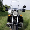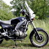 | BMW R100R Erstzulassung: 02.07.1992, DAS Motorrad für mich, den 4-Jahreszeiten-Allwetter-Wochenend-Anti-Heizer Köln-Hoher Westerwald-Köln. Große Touren-Scheibe, Enduro-Handschützer, Sturzbügel, Fußschützer (von Clemens Lodomez, Köln, für seine Polizei-Maschinen entwickelt), Beinschützer (von Theofried Jeckel, Idstein), absolut tourentaugliche Koffer und ein zusätzlich sozia-lehnen- und helm-fähiges Top-Case (made by Lodomez) lassen nur BMW(-zwei-Ventiler-)Ignoranten die Stilfrage stellen. Die Schönheit einer BMW ist nun mal nicht massenkompatibel, sie liegt - wie wohl jede wahre Schönheit - im Auge ihres Liebhabers. Bis auf einen Lichtmaschinenausfall (der Sammler ziert seither meinen Schreibtisch) gab es auf 76.000 Kilometern nichts zu meckern. Die gute R100R trug mich auch durch Schottland, Schlesien, Masuren und Rumänien. Auch ein - polizeilich bestätigt - unvermeidlicher frontaler Seitenaufprall auf den Pkw-Kühler einer wochenend-gestressten Mutter, die mir bei Hachenburg die Vorfahrt nahm, konnte meiner R100R letztendlich nichts anhaben. Der wirtschaftliche Totalschaden wurde mit Hilfe der Versicherung derart kuriert, dass aus der Wiederherstellung eine quasi Neugeburt wurde: Außer dem Motor und dem Hinterrad war fortan alles neu. Der Einbau eines etwas stärker gekröpften Lenkers brachte mir auch noch DIE ultimative Sitz-Passform, very british. |