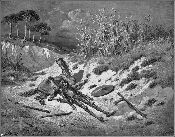 In dieser Illustration zeigt Gustave Doré Don Quixote und Rosinante